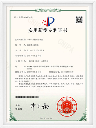 一種一次性鋁箔餐盒-實(shí)用新型專(zhuān)利證書(shū)